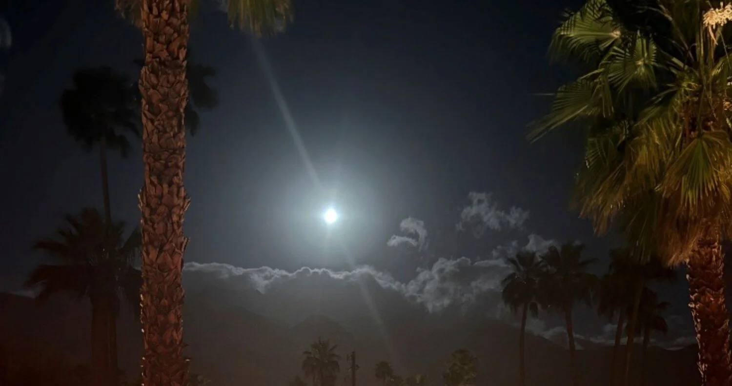 There it was in the western sky staring at me from over the San Jacinto Mountains, shining brightly into my bedroom through the sliding doors casting its brilliant glow.